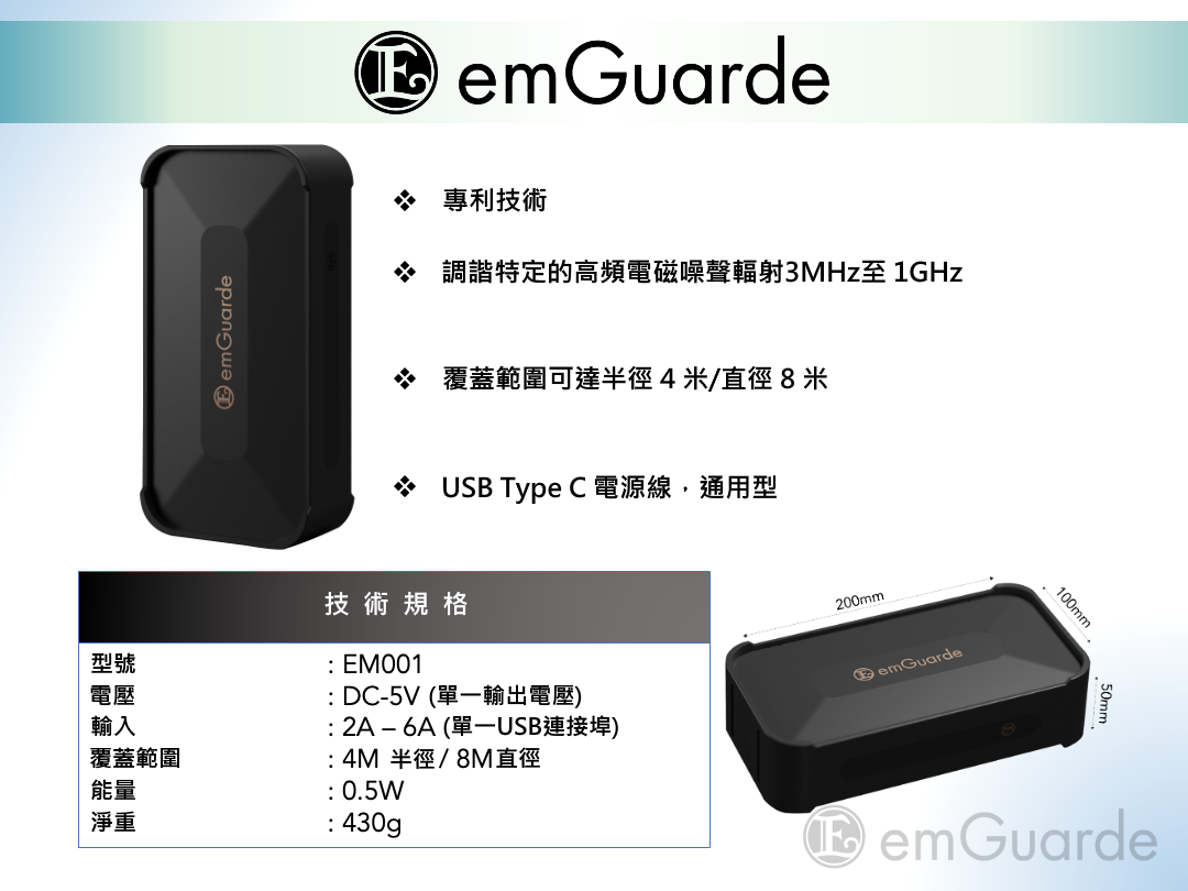 一種電子裝置,可以在半徑4米範圍內和周圍調和高頻電磁“噪音”(介於3MHz到1000MHz之間),特別是由家庭、辦公室或汽車中的電子/電氣設備產生的非電離輻射頻譜。