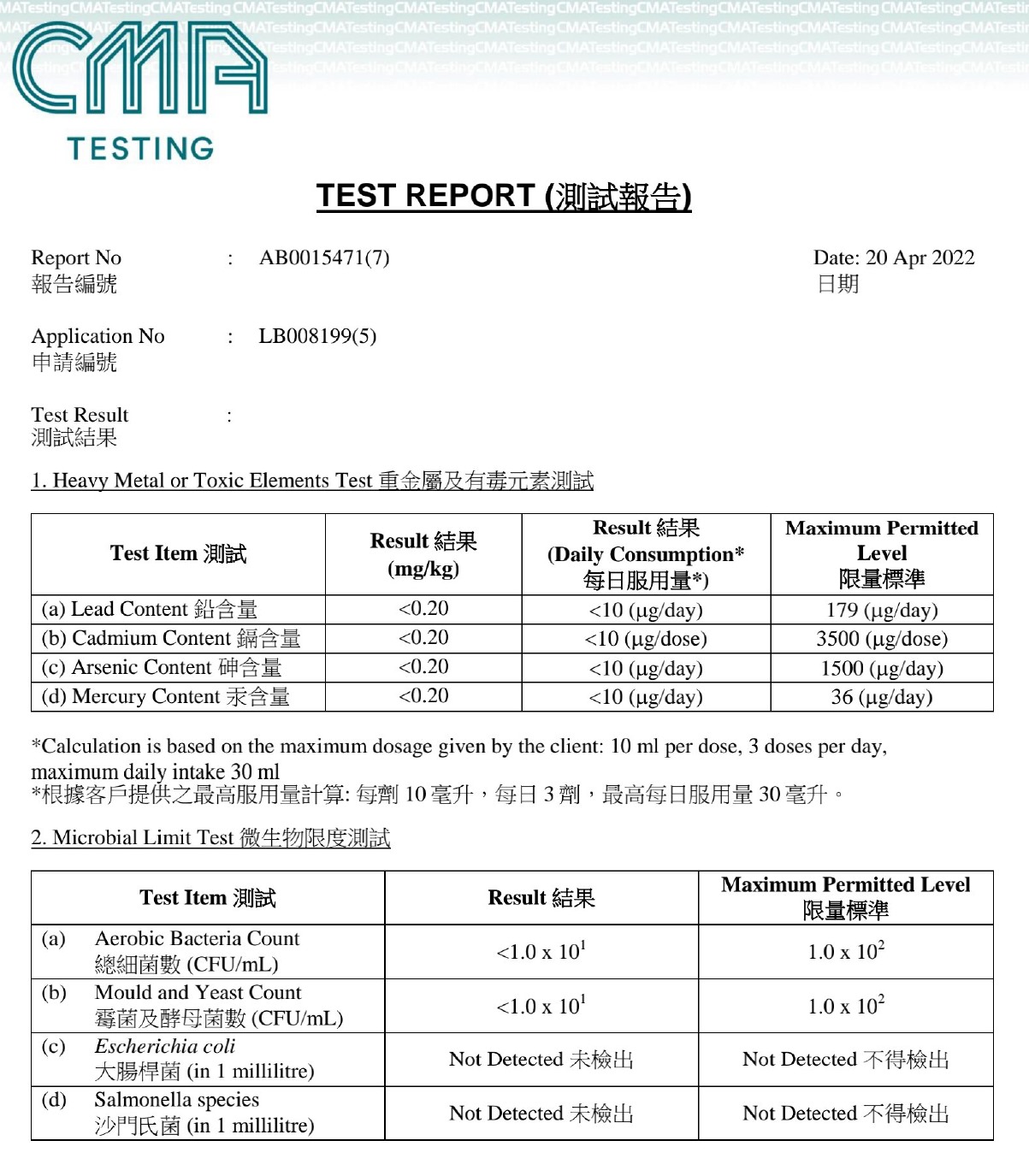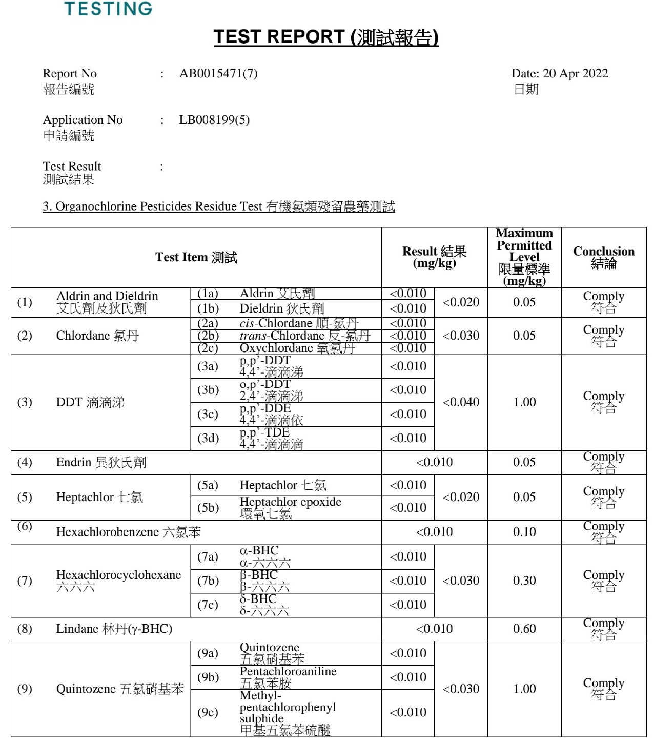 安全驗證 經第三方檢測報告確認通過: ✓ 重金屬及有毒元素測試(鉛、鎘、砷、汞) ✓ 有機氯類殘留農藥測試 ✓ 微生物限度測試